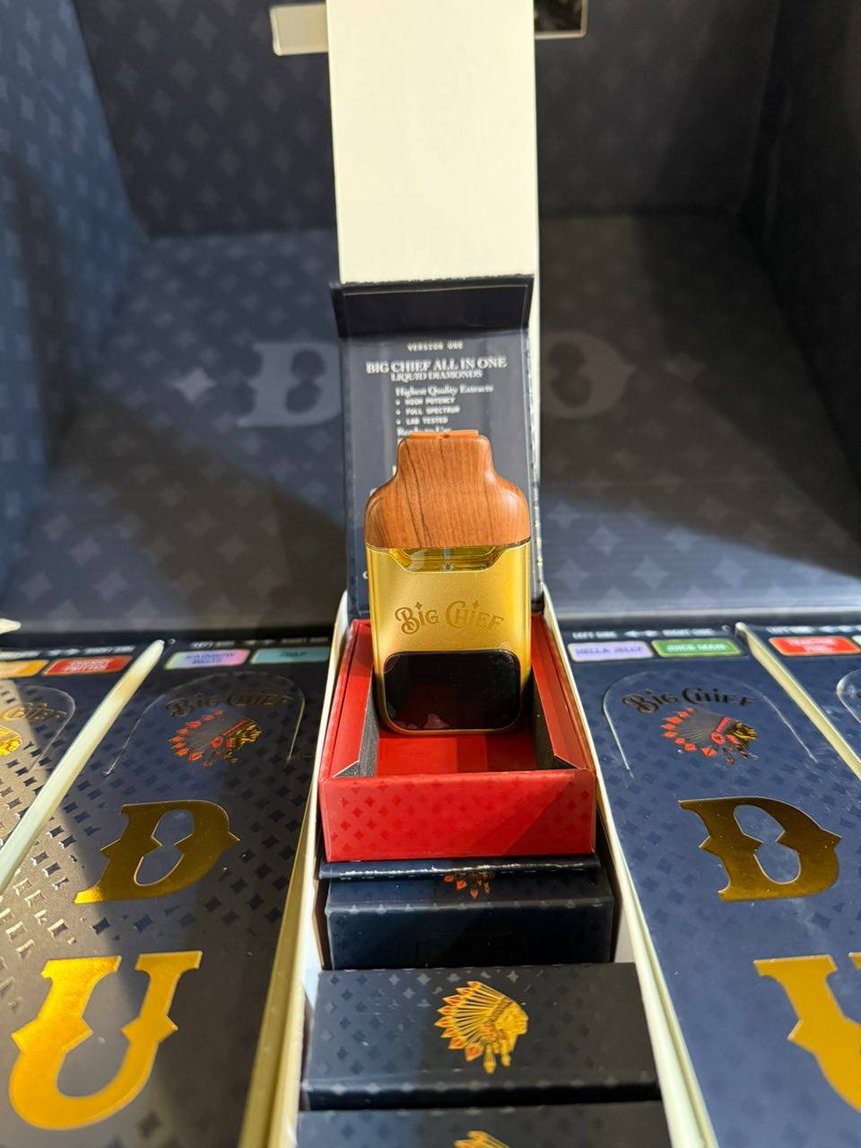 BIG CHIEF is known for using top-tier cannabis sourced from licensed growers. The oils are typically produced through a combination of distillate and live resin, which ensures both potency and a rich terpene profile for enhanced aroma and flavor. -