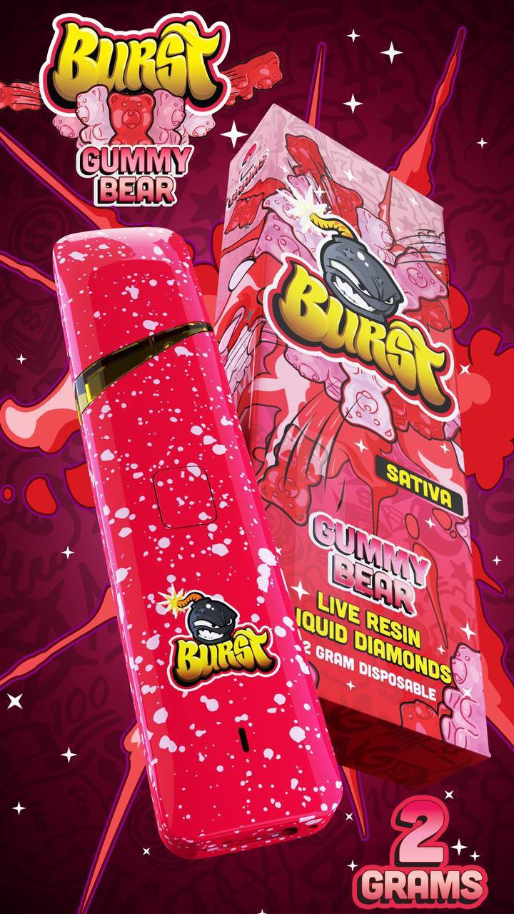 - The popularity of Burst disposable products; With Burst 2g disposable vape Live Resin Liquid Diamonds and Burst 2g disposable vape THC options, Burst disposable products offer a diverse range of flavors to suit every preference. The Burst 2g disposable vape ensures a smooth and flavorful inhale, mimicking the authentic taste of cannabis strains.