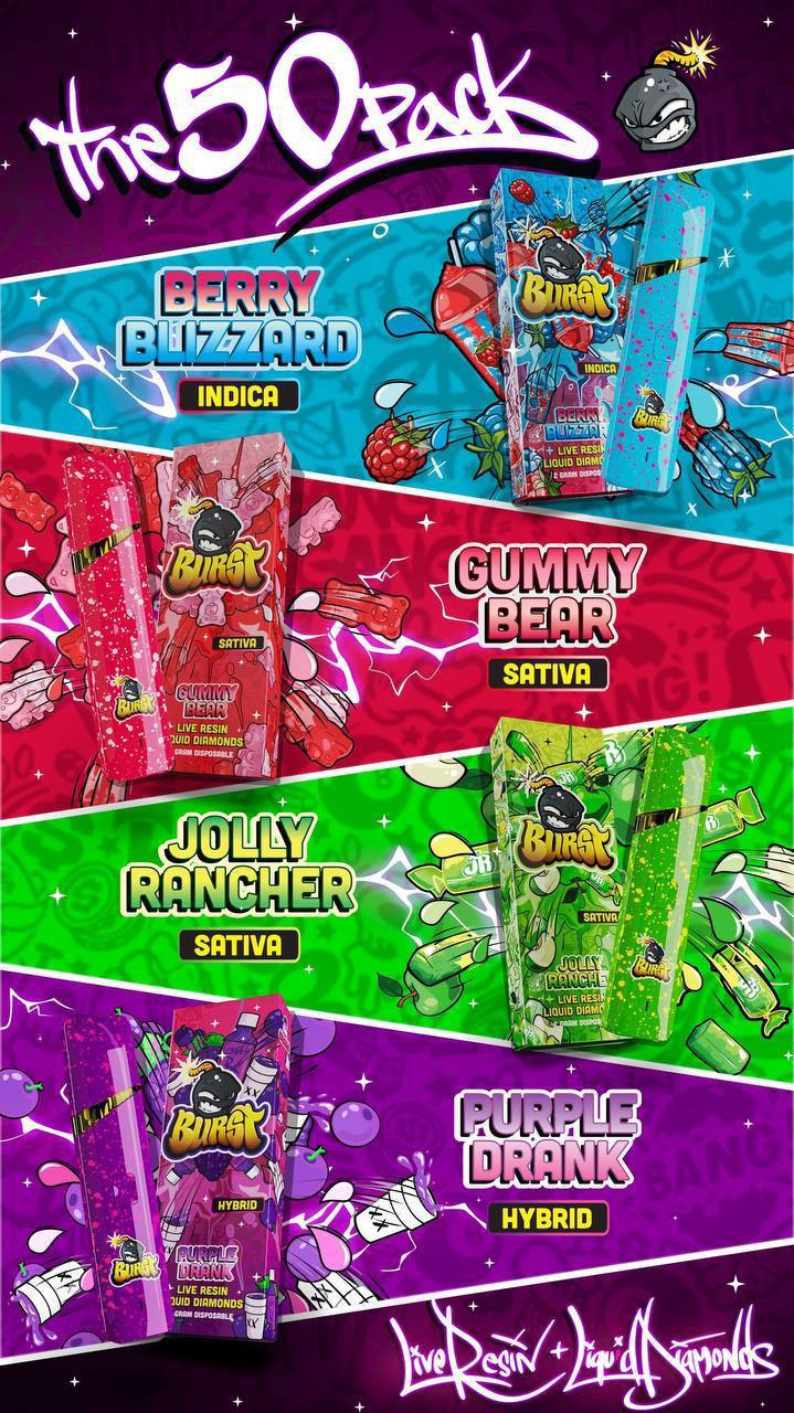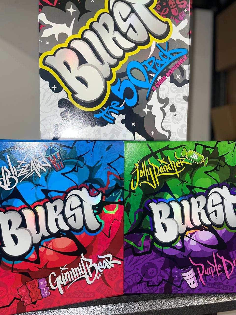 - Understanding the 2g Burst disposable options; When you buy Burst 2g disposable vape online. You have access to Burst Live Resin, Liquid Diamonds, and various Burst options. These Burst 2g disposable vape come in a pack of 10. Providing users with a consistent and high-quality vaping experience.